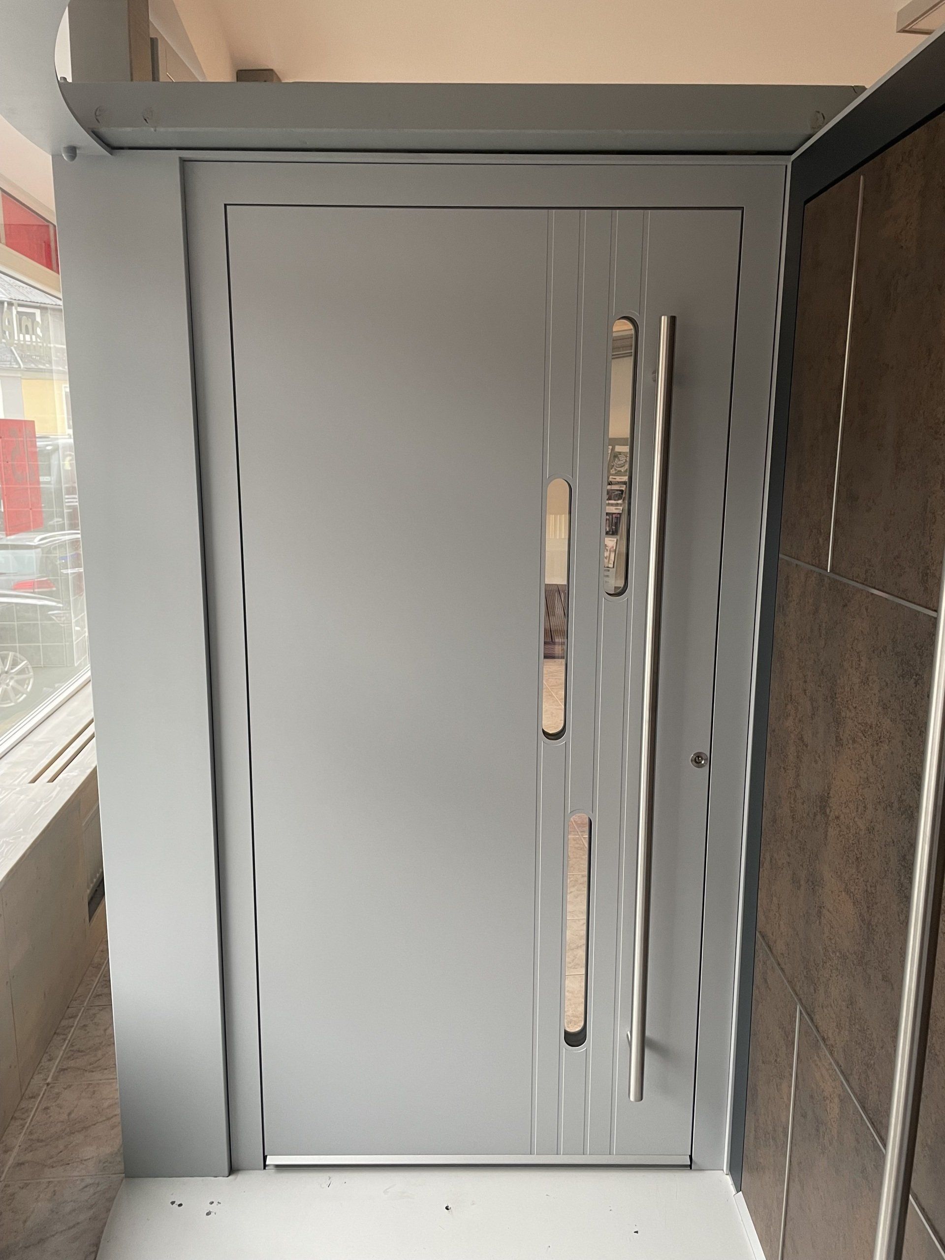 Wir verkaufen ab sofort die Haustür Modell "Feng Shui - Metall" aus unserer Ausstellung. B x H 1.100 x 2.100 mm für 2.500,00 € inkl. MwSt.