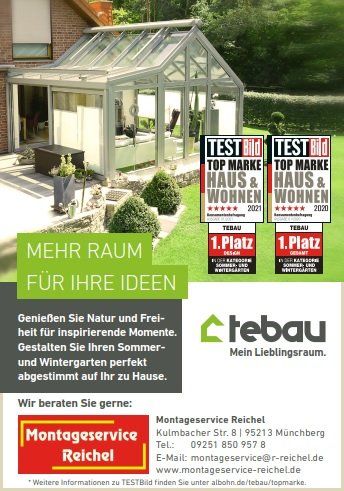 Unser Hersteller Tebau erzielt zum 2. Mal in Folge den 1. Platz in der Kategorie Sommer- und Wintergärten bei Testbild.